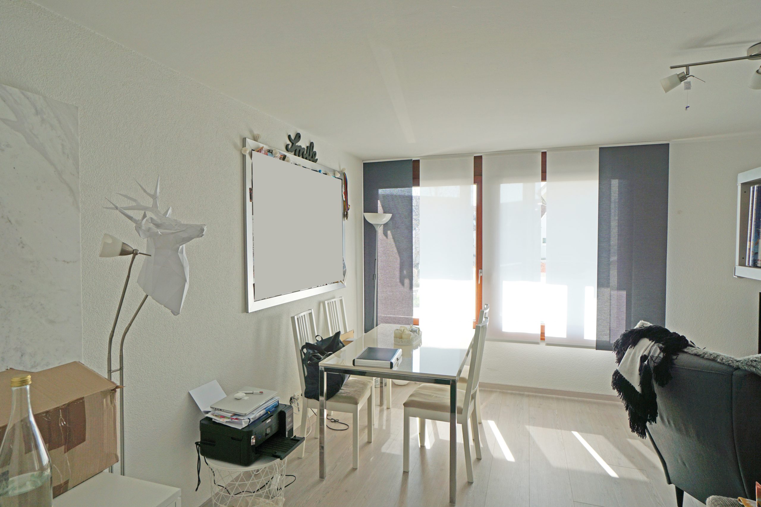 Die kleine Eingangsdiele bietet ausreichend Platz für eine Garderobe. Der Wohn- und Essbereich ist weitläufig und die vielen Fenster sorgen für eine helle, angenehme Atmosphäre. Die angrenzende Küche ist mit einer modernen, hochwertigen Einbauküche ausgestattet, die nahezu keine Wünsche offenlässt.