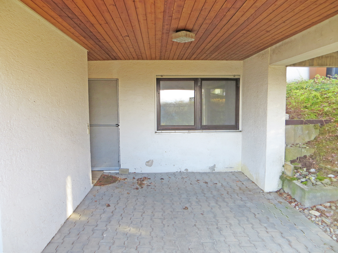 Der zur Wohnung gehörende überdachte Sitzplatz im Eingangsbereich, rundet dieses Angebot ab.